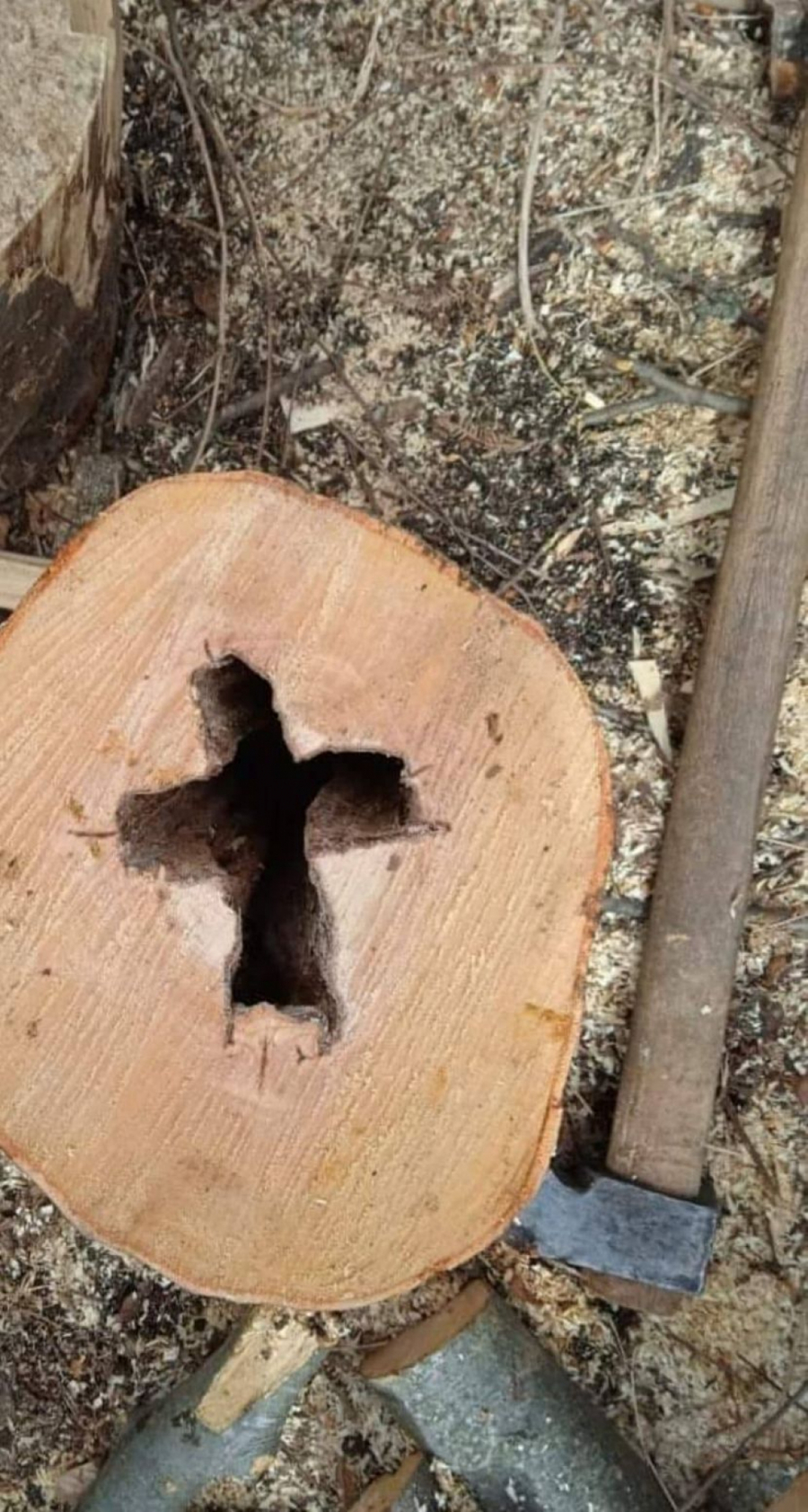 Po sredini presečenog trupca, kako kaže, "jasno kao dan ukazao se crni krst".