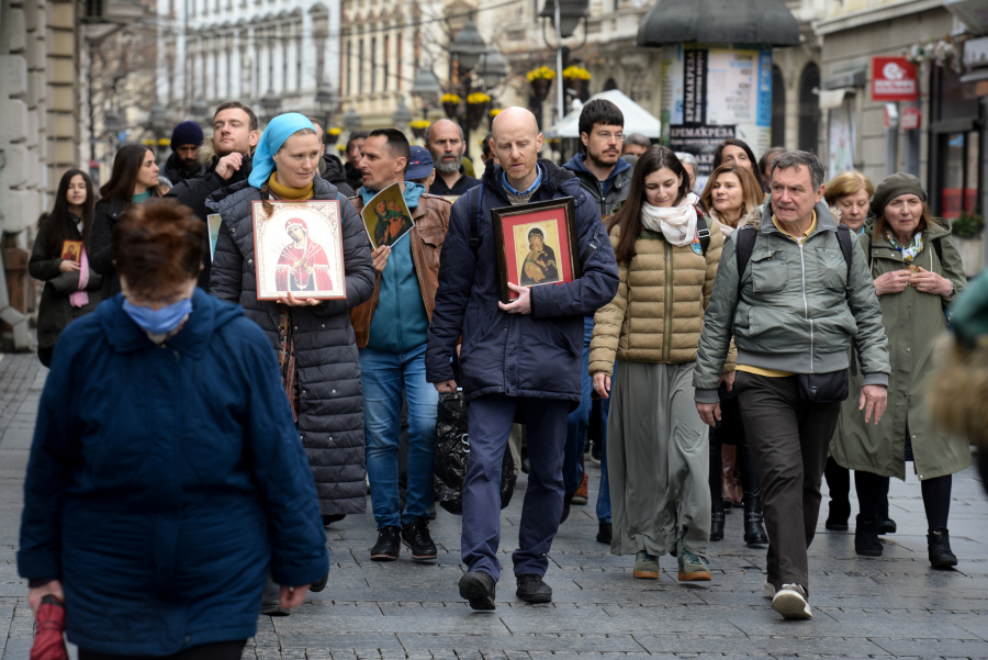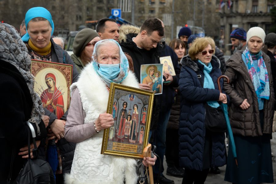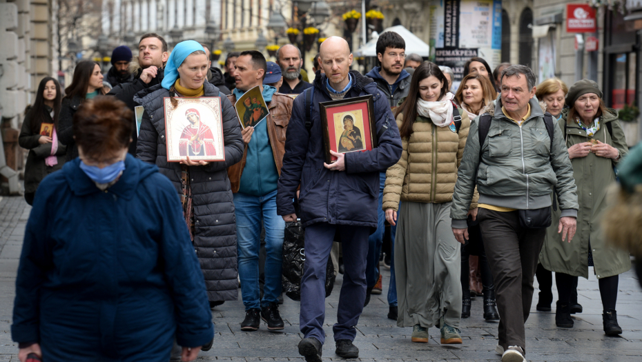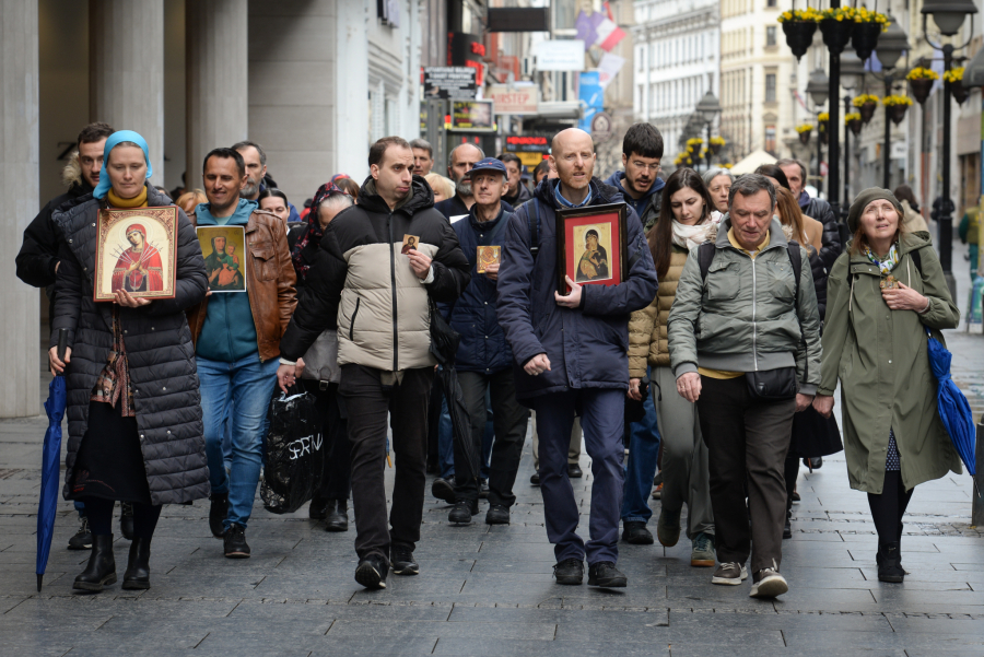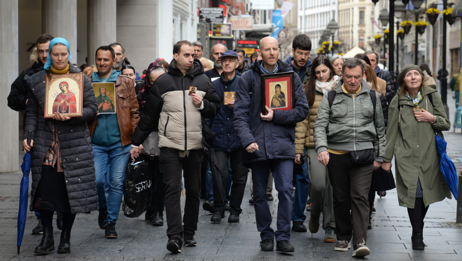 LITIJE U BEOGRADU Povodom praznika Blagovesti vernici šetali od Saborne crkve do Hrama Svetog Save (VIDEO)