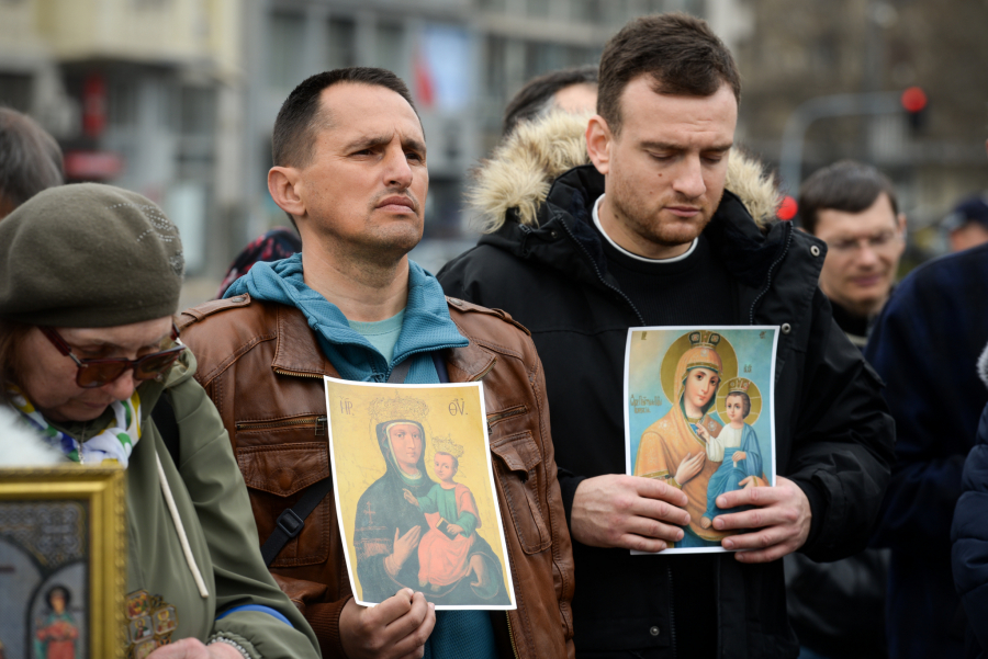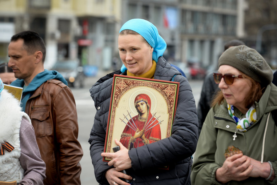 Manji broj vernika sa ikonama u rukama otišao je do Doma Narodne skupštine oko koje su simbolično tri puta napravili molitveni hod sa apelom da se izmene propisi koji dozvoljavaju abortus, i zatim nastavili do Hrama svetog Save.