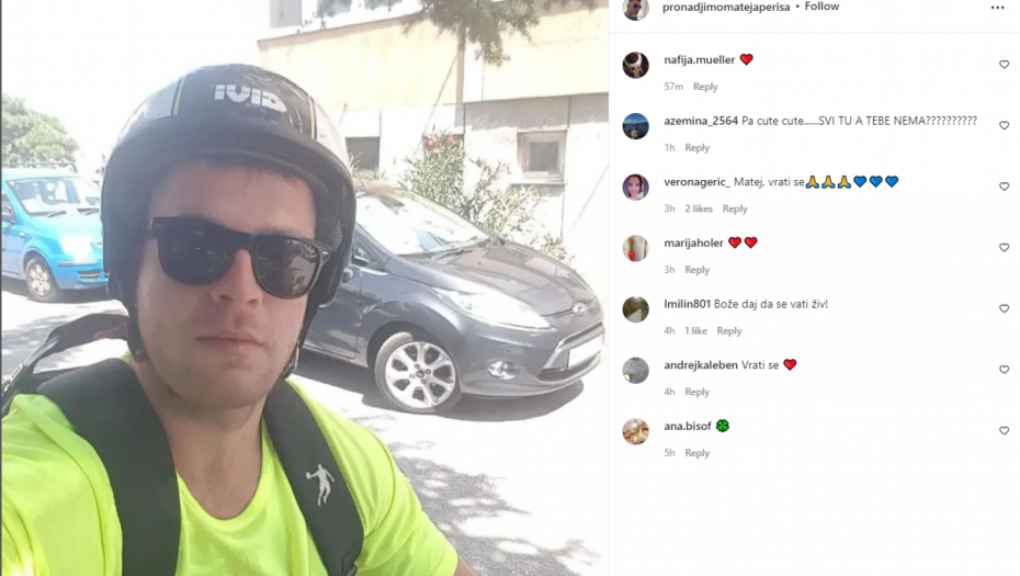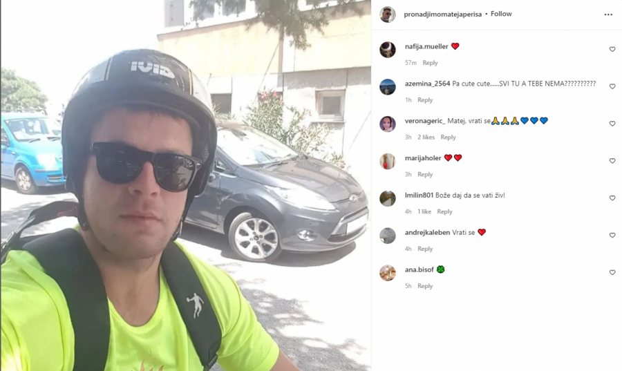 Na Instagramu na profilu "pronadjimomatejaperisa" objavljena je njegova fotografija.
