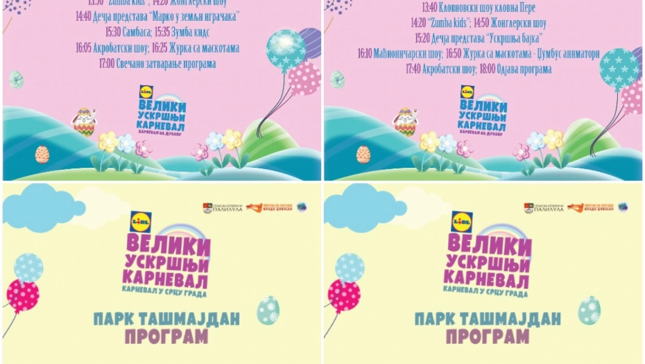 U saradnji sa Gradskom opštinom Palilula, a u organizaciji udruženja Kultur Šok, tokom vikenda biće održan peti jubilarni Veliki uskršnji karneval. Manifestacija će se održati u subotu i nedelju u prelepom ambijentu parka Tašmajdan sa početkom u 11 časova.