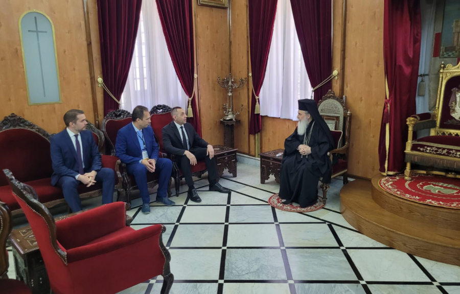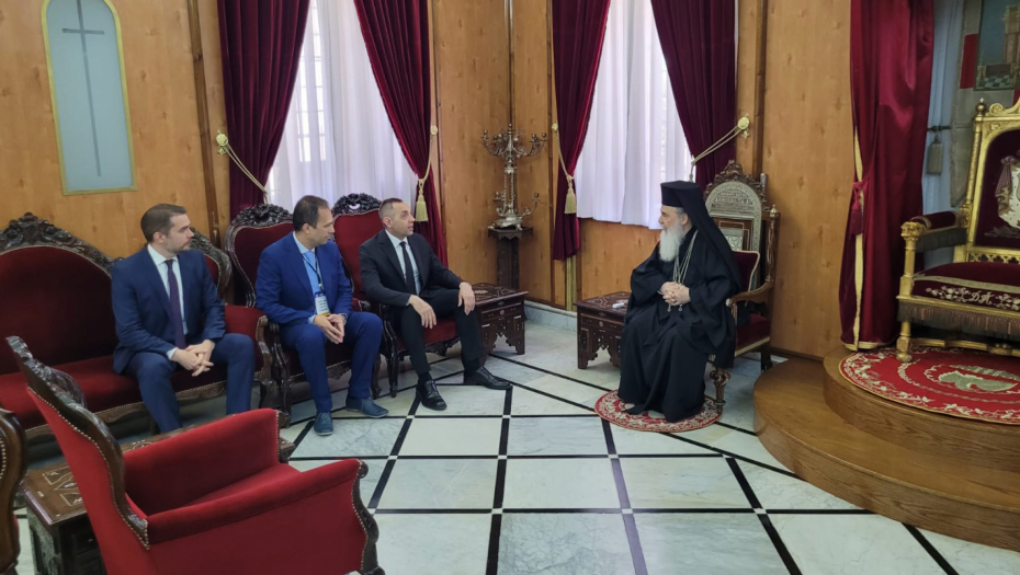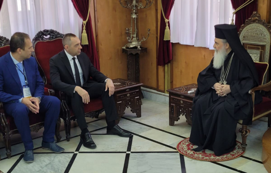 Ministar unutrašnjih poslova Aleksandar Vulin preneo je najsrdačnije pozdrave predsednika Republike Srbije Aleksandra Vučića Njegovoj svetosti patrijarhu jerusalimskom Teofilu III i istakao da država Srbija visoko ceni stav uvaženog patrijarha jerusalimskog da su Кosovo i Metohija neotuđivi deo Srbije.