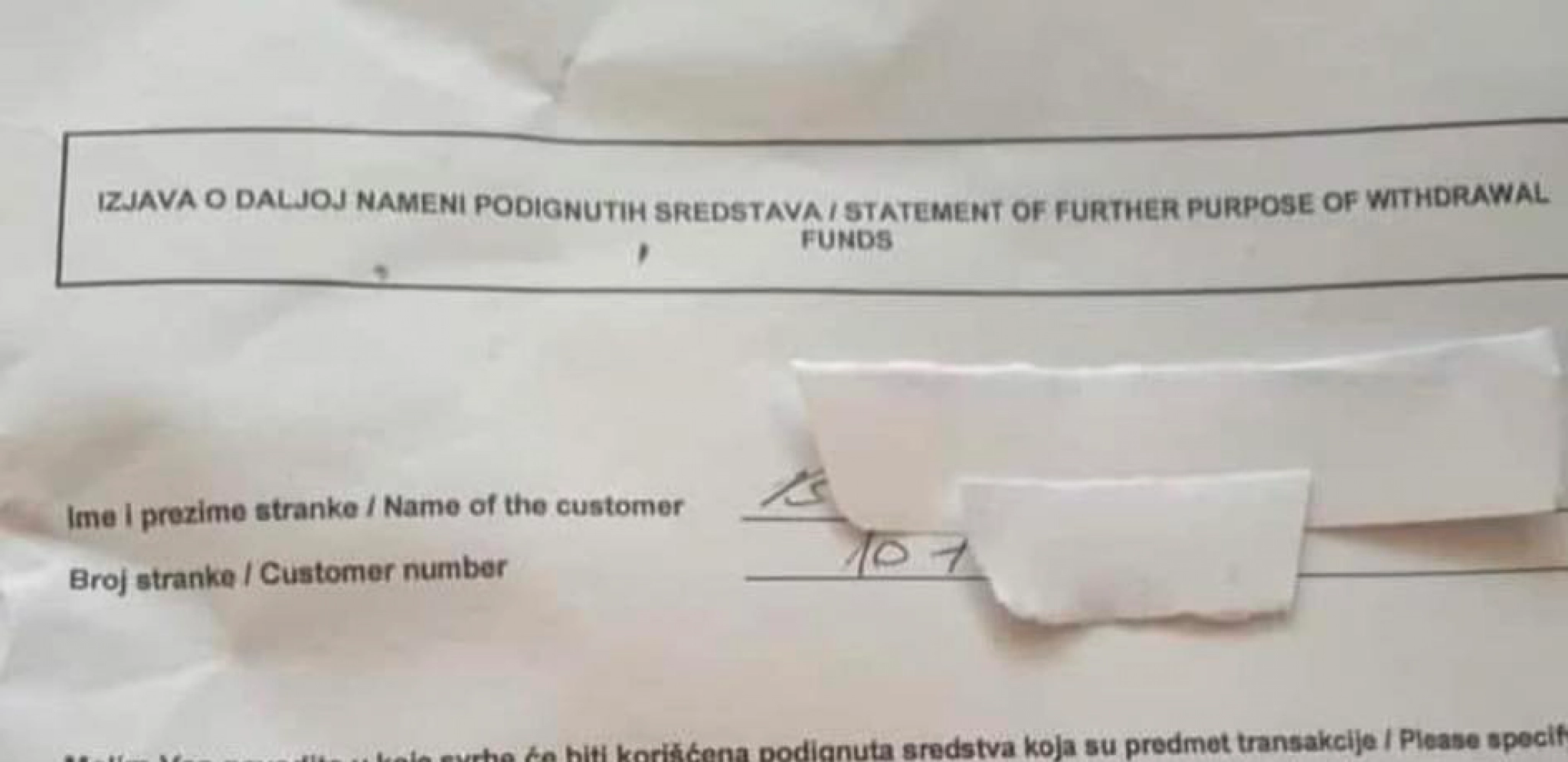 Kako se navodi, čovek je otišao u banku da podigne sopstvene pare, ali mu se nije dopalo to što je banka na obaveznom formularu koji se popunjava isuviše ušla u polje njegove privatnosti.