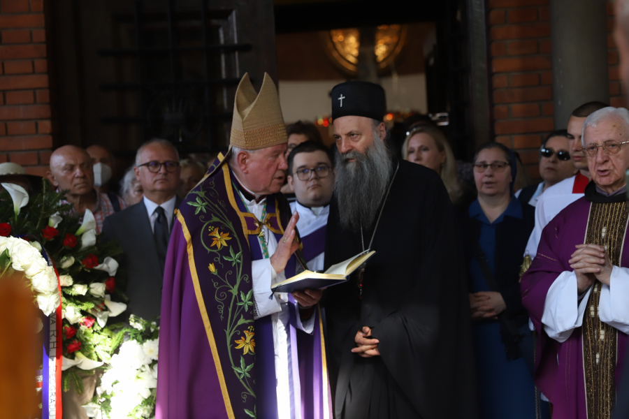 Sa Matejom su se danas opraštali prijatelji, porodica i poznanici u toku dana, a pre nego što je kovčeg iznet iz crkve, okupljenima se obratio patrijarh srpski gospodin Porfirije.