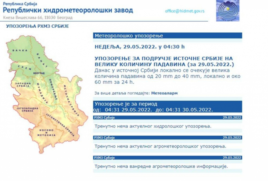 PLJUSAK U NAREDNIH SAT VREMENA Meteorolozi upozoravaju na kišu s grmljavinom u ovim delovima Srbije