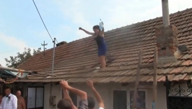 Svatovi su je ohrabrivali i podržali dok je ona odlučno pravila sve veću rupu na krovu. A onda su počeli da joj dobacuju novčanice koje je ona trpala u dekolte.