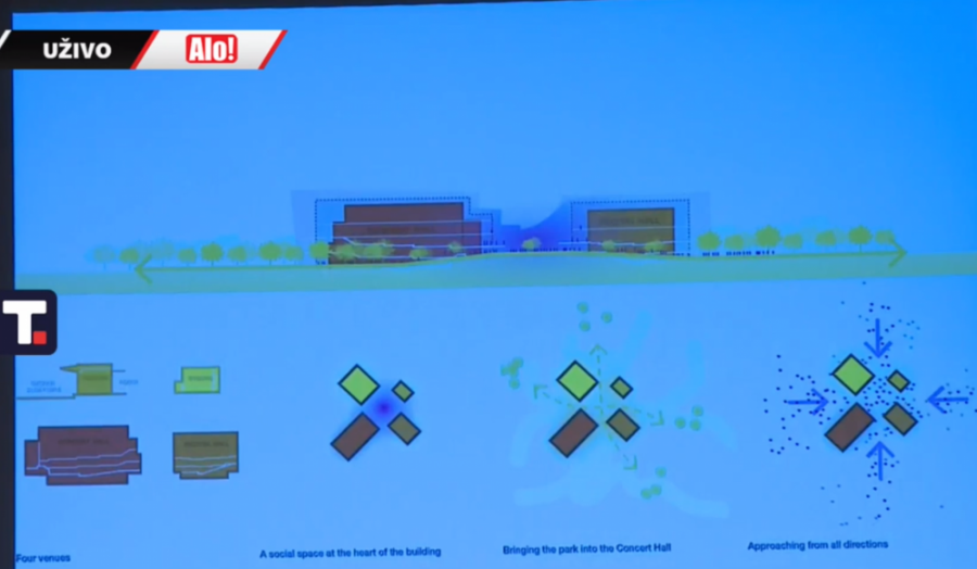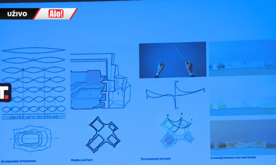 Dok je premijerka govorila, prikazano je nekoliko grafičkih rešenja za buduću Filharmoniju: