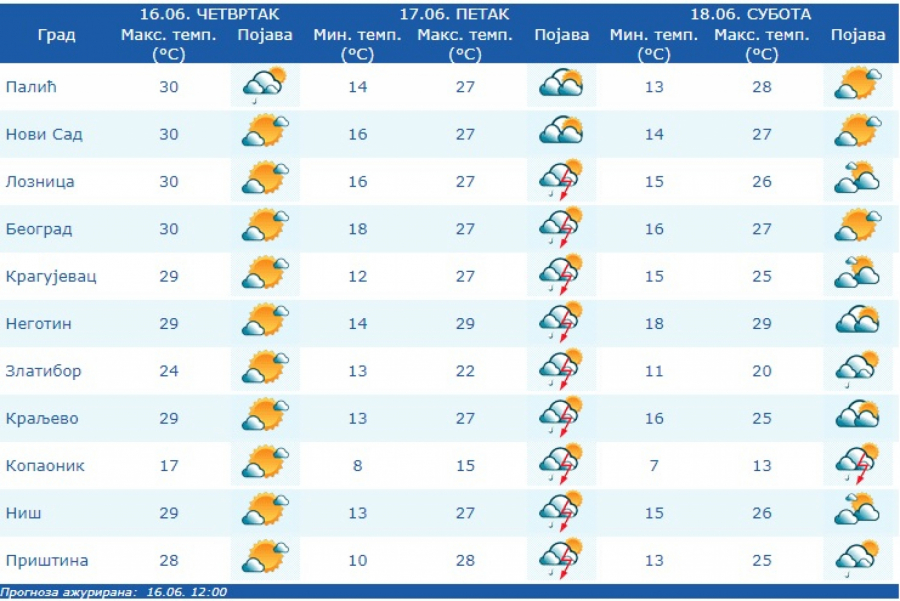 U Srbiji u subotu promenljivo oblačno sa dužim sunčanim intervalima, a kratkotrajni pljuskovi sa grmljavinom očekuju se ponegde na jugoistoku zemlje.