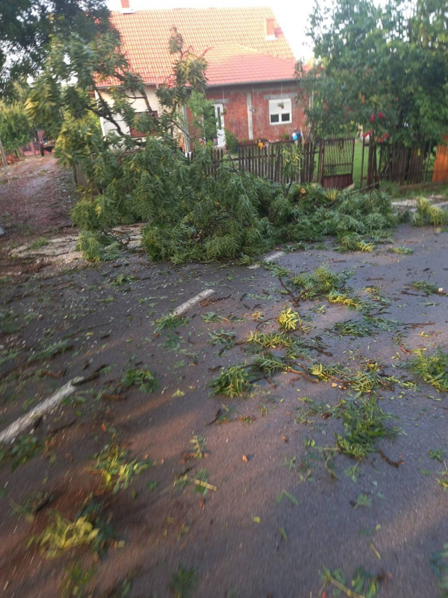 - Zaseok "Veljić" kraj je bez električne enegrije, verovatno ima problema na još lokaliteta jer je vetar pokidao kablove od struje, odnosno obarao je stabla a tom prilikom su na nekoliko mesta pokidane i žice. Takođe je zastoj na glavnom putu prema Natalincima, na ulasku u selo jer je oboreno veliko stablo. Ne pamtimo ovako nešto, velika šteta nas je snašla za kratak period - dodaju meštani.