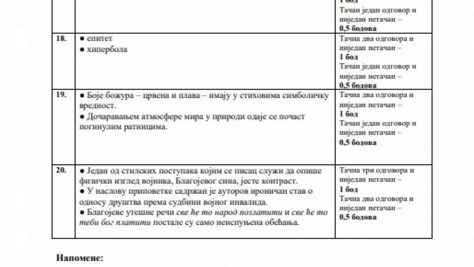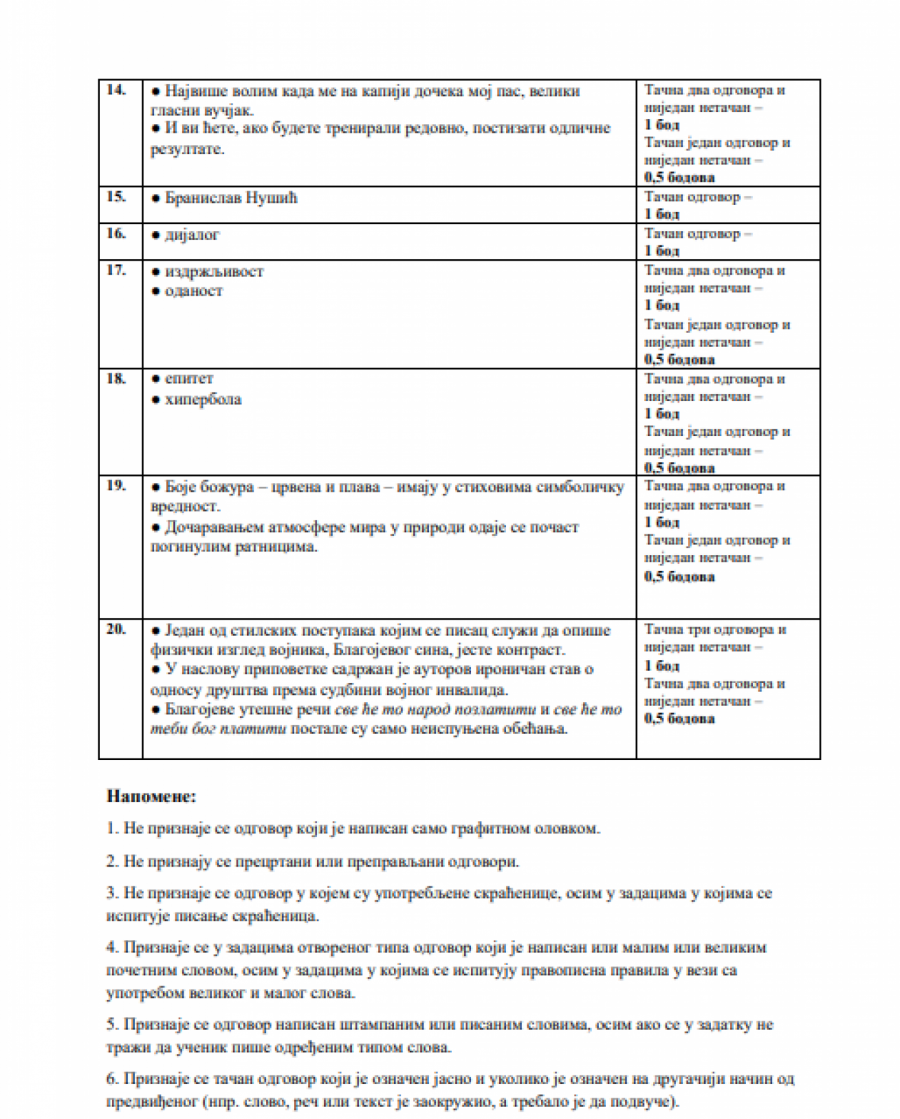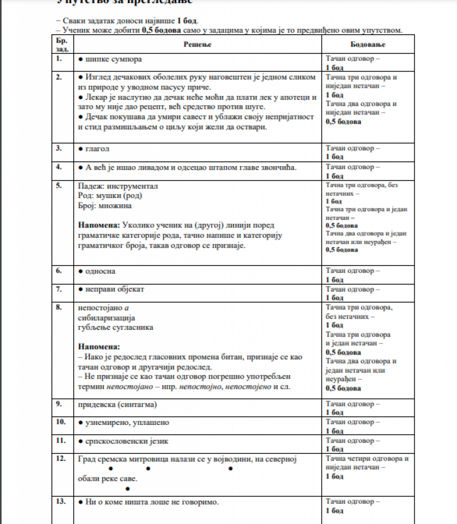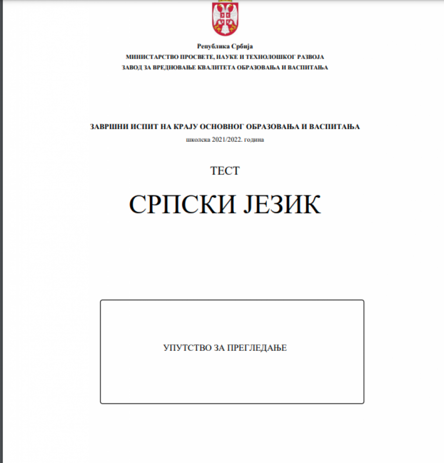 OVO SU REŠENJA TESTA IZ SRPSKOG JEZIKA Osmaci u trci za upis u srednje škole