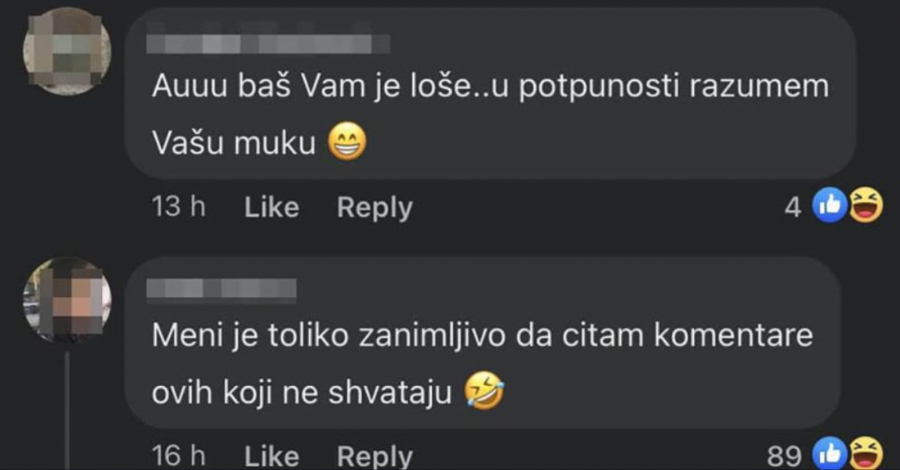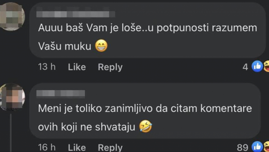 "Da li Vi znate uopšte cene u restoranima? Sramota je kuditi nešto što ste svesno naručili", bio je komentar jedne žene, dok su na to pristizali odgovori: "Gospođo zar je moguće da ne prepoznajete sarkazam", "Bolje bi bilo da obrišete komentar, smeje vam se narod!".