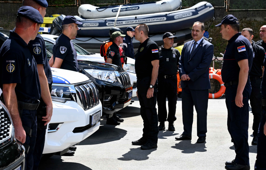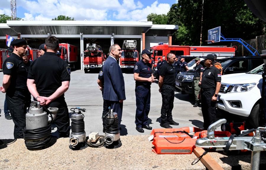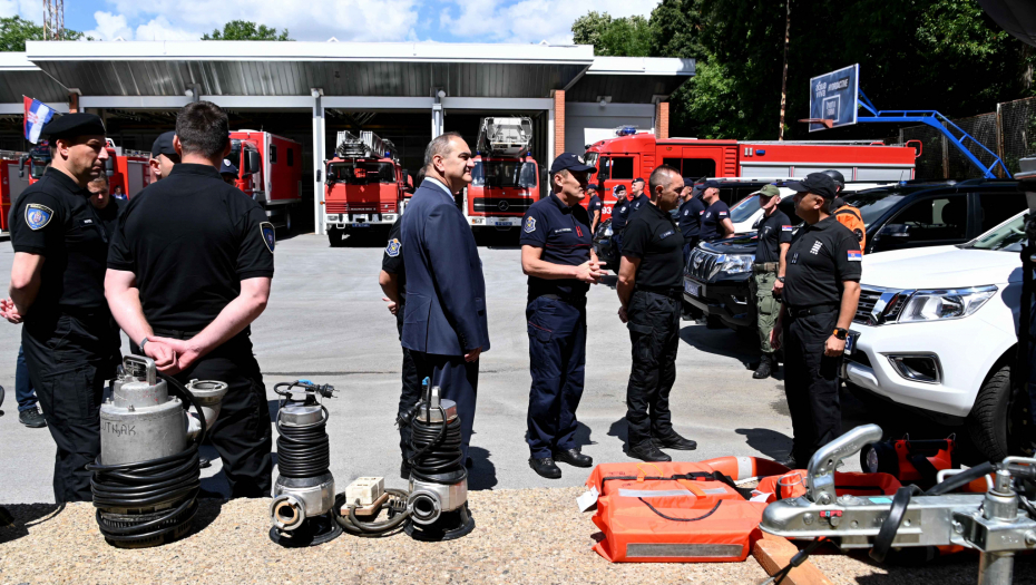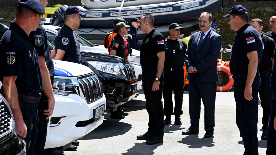 Ministru su ovom prilikom predstavljena nova vozila, čamci i oprema koji su korišćeni prilikom spasavanja građana iz poplavljenih naselja.