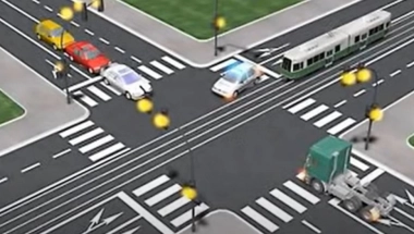 Kao što se može videti, s obzirom na to da semafori ne rade, prednost će imati vozilo sa rotacijom, a nakon njega će krenuti tramvaj, automobil i na kraju kamion.