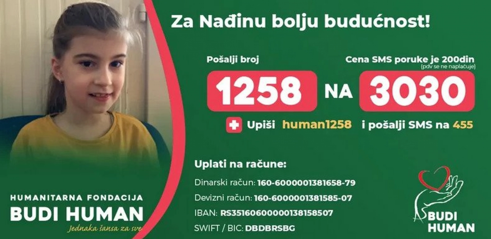 Nađa je uspela da prikupi stredstva za treću transplantaciju matičnih ćelija, ali za četvrtu još nema novac, a nju treba da primi 15 dana posle treće. Za tu dozu matičnih ćelija nedostaje joj još 1.200.000 dinara.
