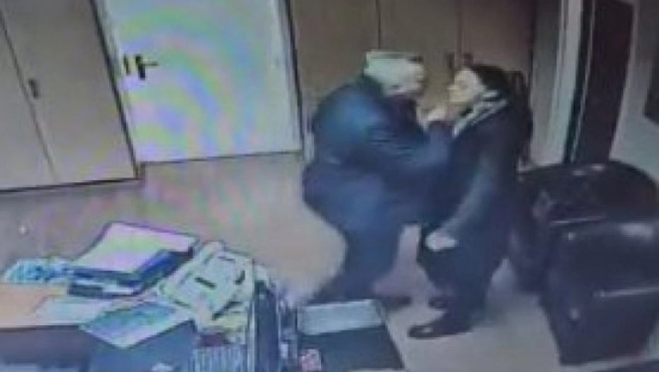 Naime, na društvenim mrežama pojavio se snimak sa sigurnosne kamere na kom se vidi kako muškarac ulazi u kancelariju i unosi se u lice radnici, nakon čega je hvata za vrat i gura u fotelju, ona pada u fotelju i udara leđima o zid.