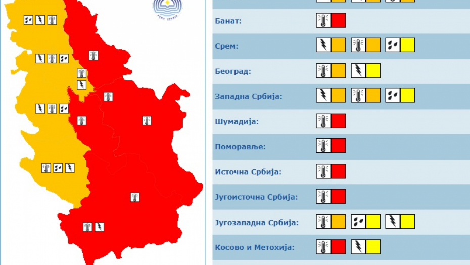 CRVENI METEOALARM ZA DANAS RHMZ izdao upozorenje na nevreme i ekstremne vrućine