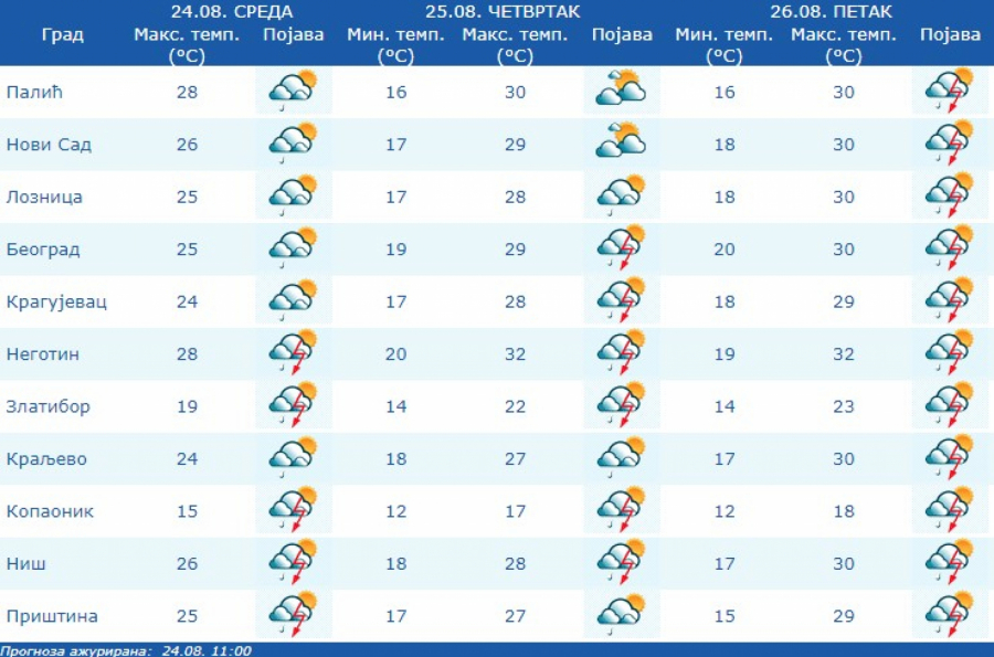 - Danas će uticaj ciklona polako slabiti ali će i dalje ka nama u severoistočnom i istočnom visinskom strujanju dolaziti nestabilan vazduh tako da će biti pojave pljuskova, ponegde sa grmljavinom. Ipak nestabilnosti bi generalno trebale biti ređe i slabije u odnosu na protekle dane, dok bi se posle podne i krajem dana nad velikim delom regiona delimično razvedrilo. Dnevni maksimum i dalje ispod proseka, uglavnom do +18 do +26 stepeni Celzijusa - predviđa meteorolog.