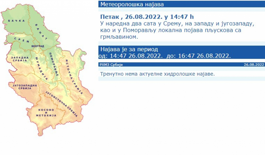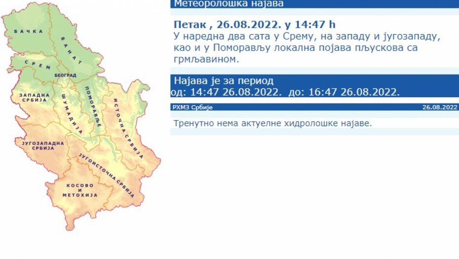 Ovo potvrđuje i najava RHMZ Srbije: