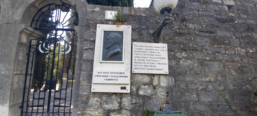 Manastir Savina poznat je i po poslednjoj poseti kralja Aleksandra I Karađorđevića, koji je 6. oktobra 1934., posle prisustvovanja molitvenoj Svetoj liturgiji, otputovao u Francusku, gde je u Marseju bio žrtva atentata. Na samamo ulazu, sa unutrašnje strane Manastira, ovaj istorijski događaj zabeležen je na dvema pločama.