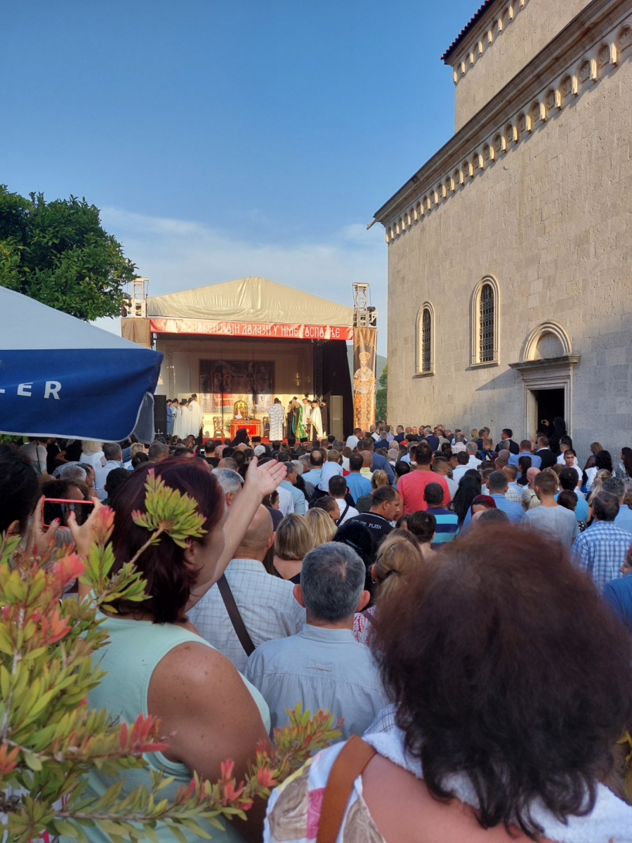 -“Na obali ovog divnog grada, u svetom manastiru, blagoslovom visokopreosvećenog mitropolita crnogorsko-primorskog, dobrotom i ljubavi gradonačelnika grada Herceg Novog, evo nas ovde po promislu Božijem uoči praznika Uspenja Presvete Bogorodice, uoči praznika one koja je po svemu i u svemu uzor i primer, ali i pokrov i zaštita čitavog ljudskog roda. Uoči praznika one koja je svojom ljubavlju pred Bogom postala zaštitnica čitavog ljudskog roda, ali i one, koja svojim primerom ljubavi i smirenja pokazuje kakav treba da bude naš odnos prema Bogu, ali i prema ljudima-rekao je patrijarh I dodao: