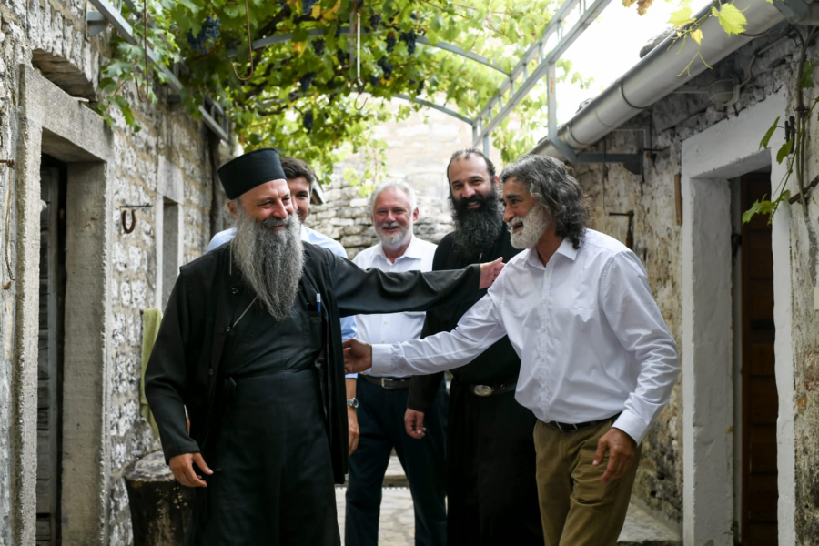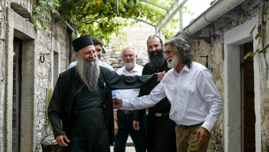 PATRIJARH OBIŠAO KAMENO ČUDO ŽLIJEBI Porfirije uživao u društvu proslavljenog vaterpoliste, evo šta ga je oduševilo (FOTO)