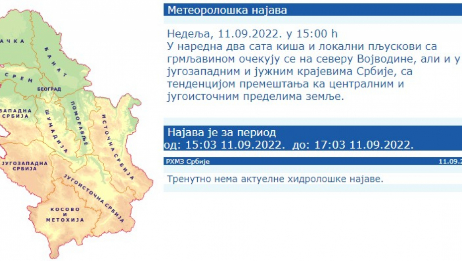 Foto: RHMZ Printscreen