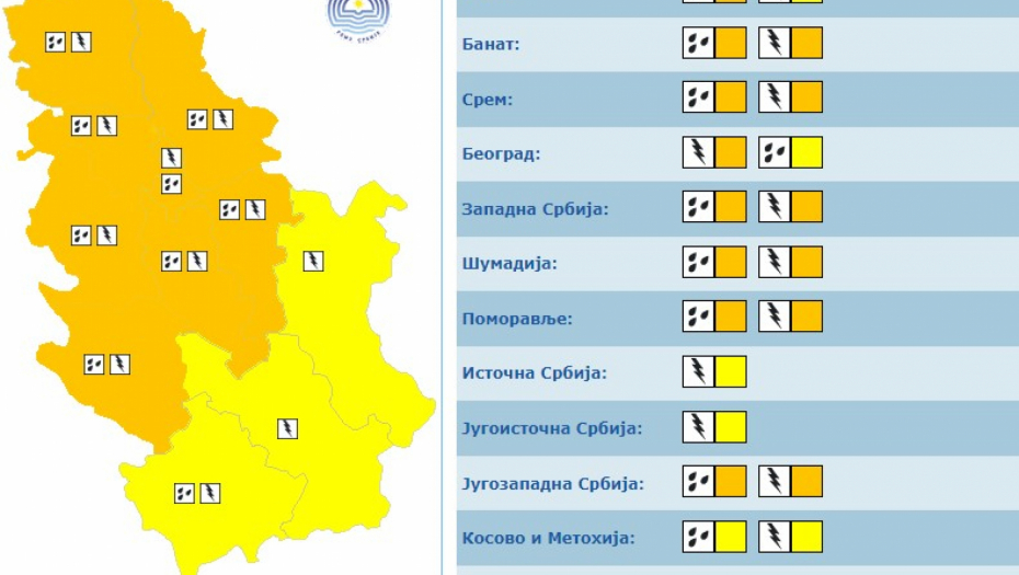 Večeras i tokom noći kiša i lokalni pljuskovi sa grmljavinom očekuju se u Vojvodini, a sutra i u subotu i u ostalim krajevima sa uslovima i za obilnije padavine.