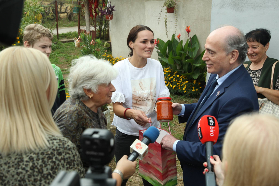 Ministar je posetio dom samohrane majke blizanaca Jelenu Ranđelov koja na svojih pet ari okućnice uzgaja papriku, a pravi i proizvode od nje.