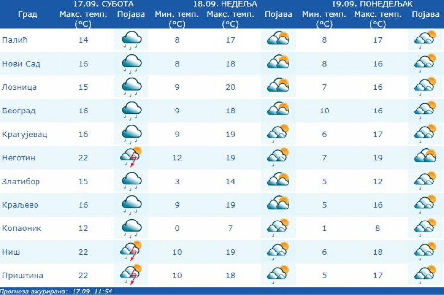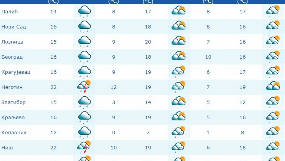 Kako je naveo, lokalno se očekuje od 10 do 30 mm padavina, ponegde i više.
