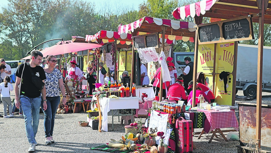 Ništa manje kreativnost nije utrošeno ni na dekoraciju štandova na koje su bili okačeni venci paprike, cveće, grožđe, ali i čuvene „kuvarice“ s duhovitim natpisima poput „kuvarice, ostavi se knjiga kada imaš mnogo većih briga“.