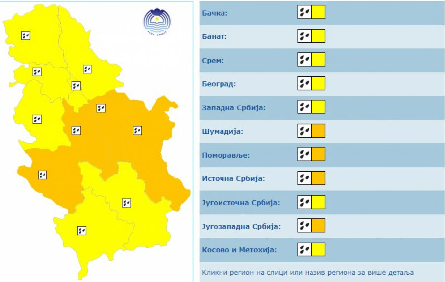 U noći između nedelje i ponedeljka kiša će preći u sneg u brdsko-planinskim predelima zapadne i jugozapadne Srbije uz lokalno stvaranje snežnog pokrivača visine od 5 do 10 cm na većim visinama. Maksimalne temperature u većini mesta od 6 do 11 °S, a na jugu i istoku Srbije i do 17 °S.