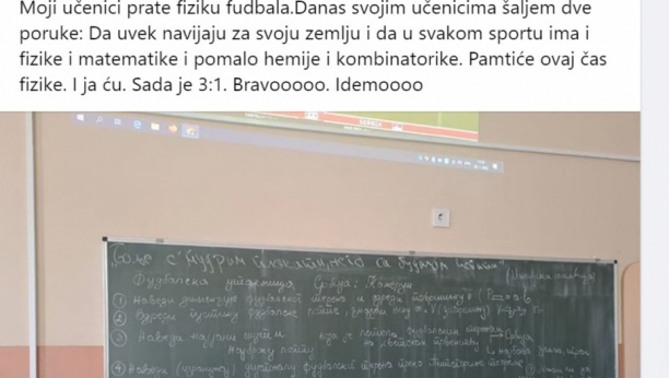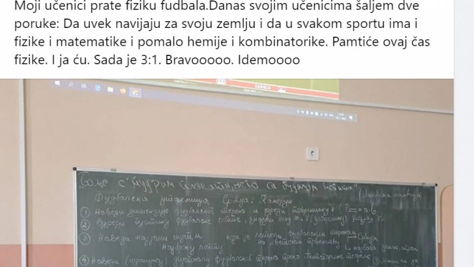 - Imali smo podelu energija na tom času, od onih koji su samo hteli da gledaju fudbal, do onih koje to uopšte ne zanima, a treba ispuniti i zakonski okvir časa. Tako da smo nešto što gledamo na televiziji upakovali u konkretne brojeve. Pokazala sam im kakva sve pitanja iz fizike, anatomije, matematike mogu da se postave na jednom fudbalskom terenu - kaže ova posvećena i kreativna profesorka.