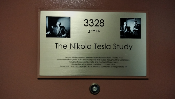 Na ulazu u sobe 3328 i 3327, a koje su nekada bile celina, nalaze se pločice na kojima je naznačeno da je u njima od 1933. do 1943. živeo veliki pronalazač Nikola Tesla.