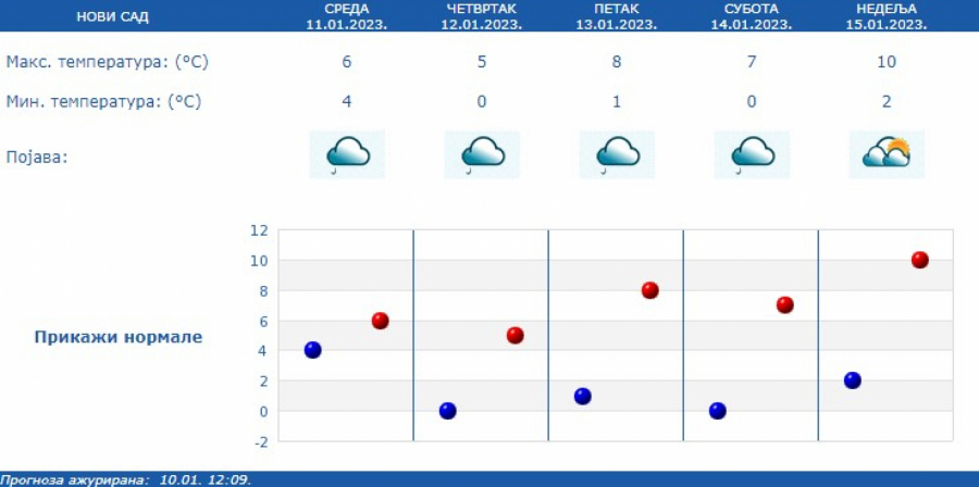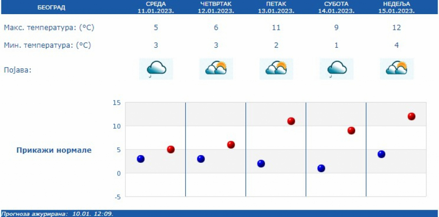 Temperatura bez većeg kolebanja od 3 do 5 stepeni. Do 18. januara umereno do potpuno oblačno i malo toplije. Sutra i u petak na severu Srbije ponegde sa slabom kišom.
