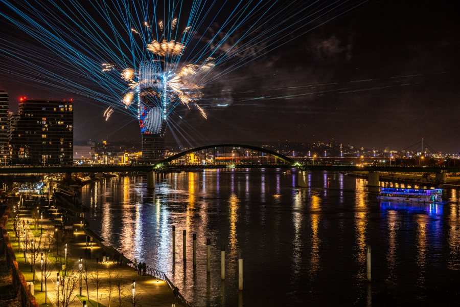 Neposredno nakon grandioznog odbrojavanja poslednjih 10 sekundi stare godine po julijanskom kalendaru, tačno u ponoć, sa Kule Beograd, novog simbola naše prestonice, usledio je impresivni višeminutni vatormet, kao i svetlosni šou nekoliko desetina lasera, bimova i LED strobova. Ovaj spektakl na nebu iznad Save propraćen je zvucima trube čuvenog Dejana Petrovića, koji je svojom muzikom proslavio Srbiju širom sveta.