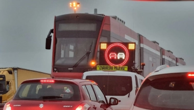 Automobili su čekali u redu da priđu kontrolnom punktu, kada je pored njih prošao, ni manji ni više, nego tramvaj.