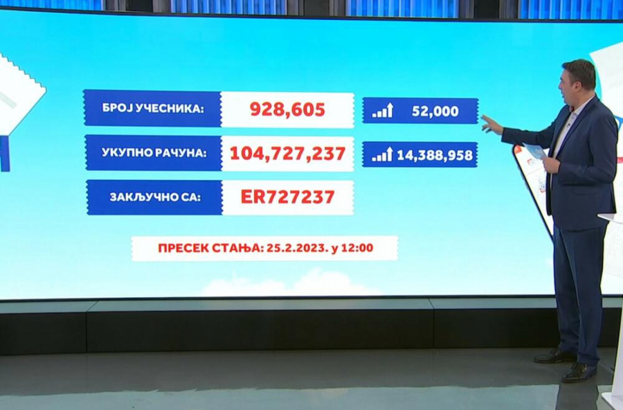 U ovom izvlačenju bilo je 928.605 učesnika, odnosno čak 104.727.237 računa, što je skoro 15 miliona računa više nego prošle subote.