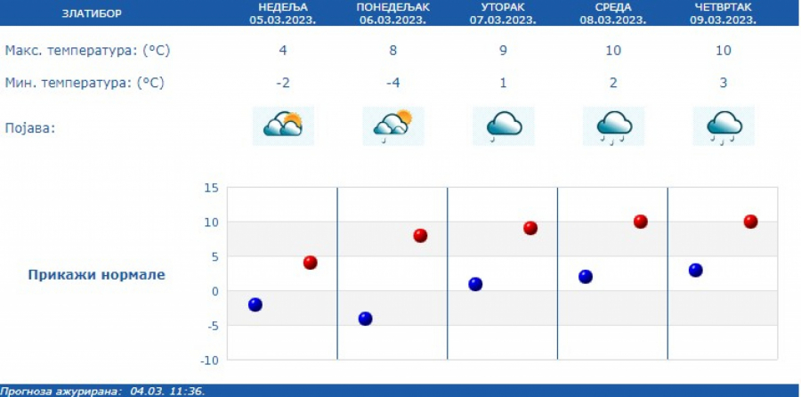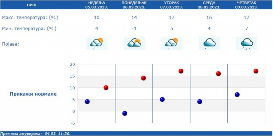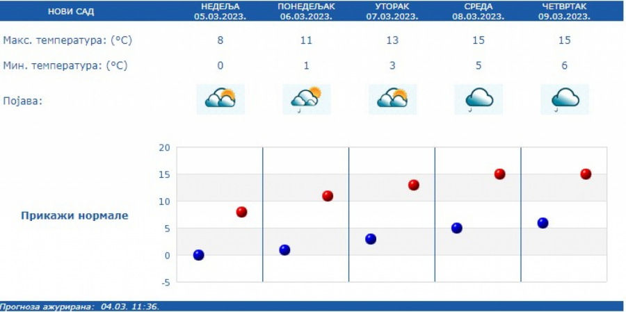 Duvaće južni i jugozapadni vetar uz porast temperature - maksimalne vrednosti od 10 do 18 °C, a zahlađenje se očekuje narednog vikenda.