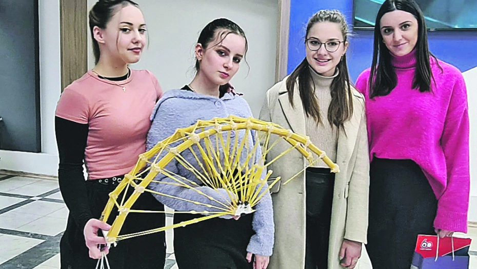 SREDNJOŠKOLKE IZ ČAČKA OBORILE REKORD NA TAKMIČENJU Najizdržljiviji most od špageta poneo 181,1 kilogram