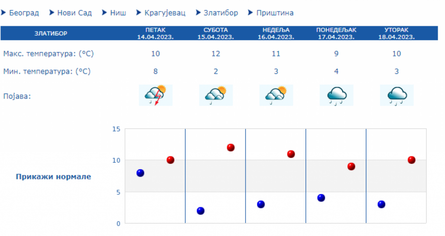 Od nedelje do četvrtka nestabilno sa čestom kišom, pljuskovima i grmljavinom, na visokim planinama i sa snegom.