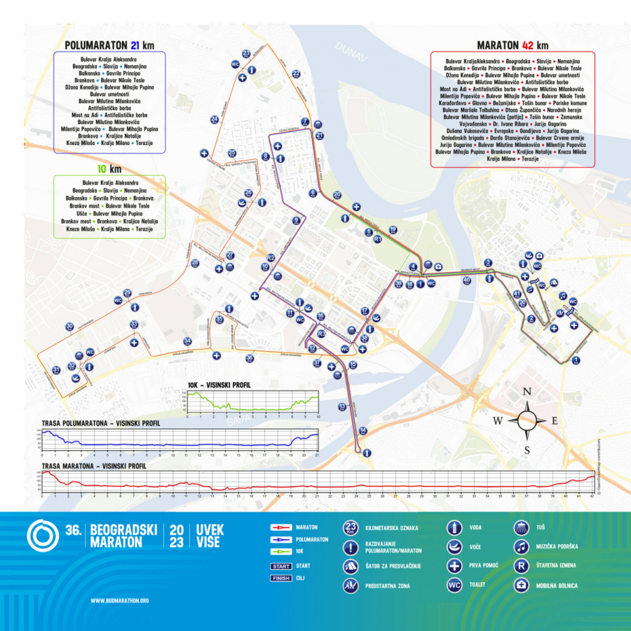 Start maratona (42,2 kilometra) i polumaratona (21,1 kilometar)je u 9 sati na raskrsnici ulica Bulevar kralja Aleksandra i Resavske, najavljeno je iz Sekretarijata za poslove odbrane, vanrednih situacija i koordinaciju.