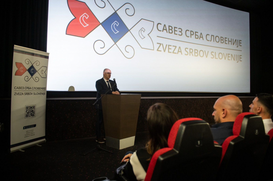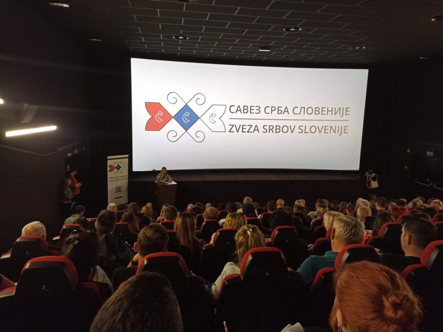 U prepunoj sali pre pojekcije prisutnima se obratio predsednik Saveza Srba Slovenije, Vladimir Kokanović i tom prilikom ukazao na značaj obeležavanja i sećanja na žrtve stradale u Drugom svetskom ratu.