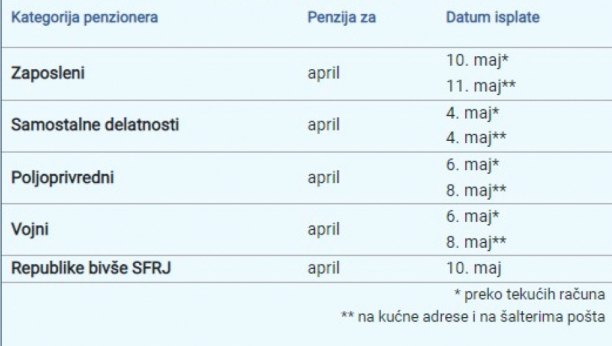 VAŽNO OBAVEŠTENJE PIO FONDA Isplata penzija od 4. do 11. maja
