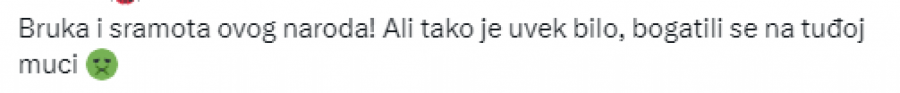 - Bruka i sramota ovog naroda! Ali tako je uvek bilo, bogatili se na tuđoj muci.