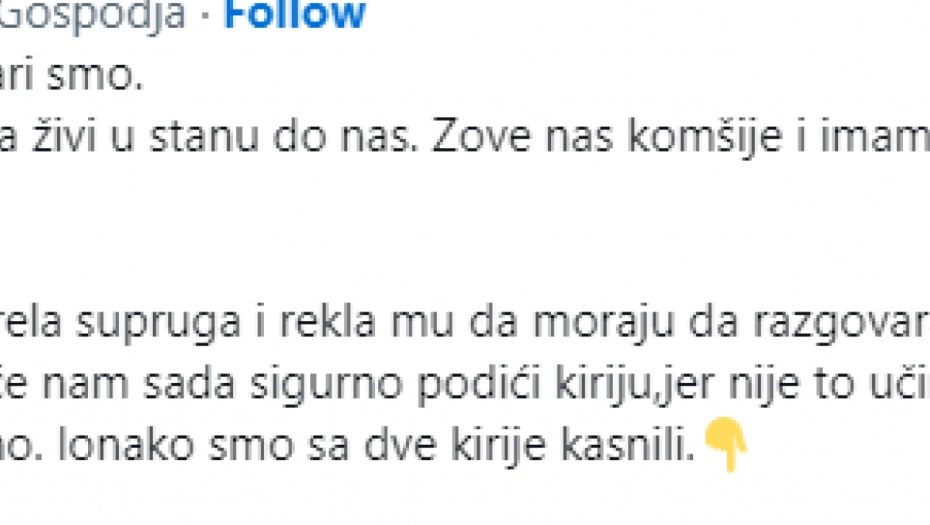 Tako je jedna mama iz Beograda na Tviteru podelila svoj slučaj koji je njoj i njenom suprugu "naterao suze na oči" zbog zahvalnosti. A možda ovaj slučaj bude primer i drugim stanodavcima da pokažu ljudskost, a pre svega razumevanje da je samo činjenica da pojeidni moraju da iznajmljuju stan je sama po sebi teška.