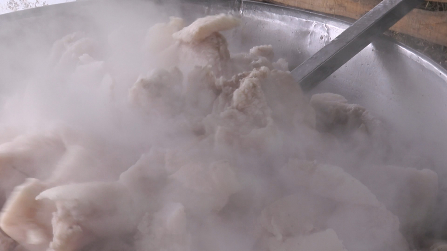- Počinjemo redom, prvo se skidaju ledjne pršute, koje će biti dugačke skoro dva metra, zatim plećke, butke i šnicle. Ovde će da bude preko 200 kilograma čistog mesa. Ali za topljenje masti i i čvaraka biće potrebno posebno stpljenje, mora polako da se meša, ali konstantno na tihoj vatri da ne zagori. Masti će ostati preko 120 kilograma dok će čvaraka biti oko 30 kilograma - kazao je kasapin Predrag Bojović.