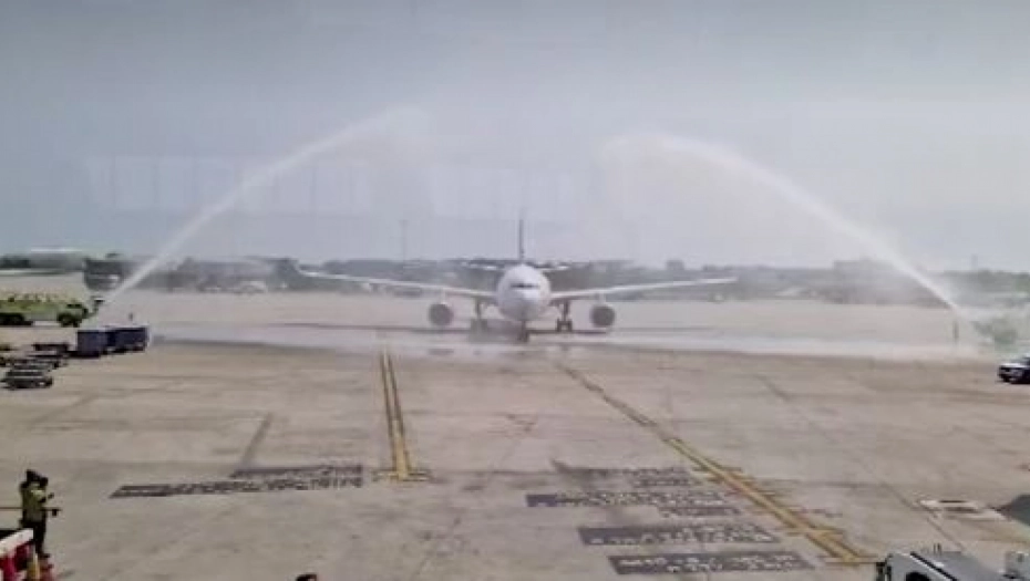 Srpski avion dočekan je vodenim topovima na aerodromu.