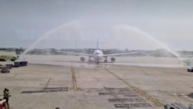 U čast prvog leta, na samom aerodromu, priređen je i svečani doček.