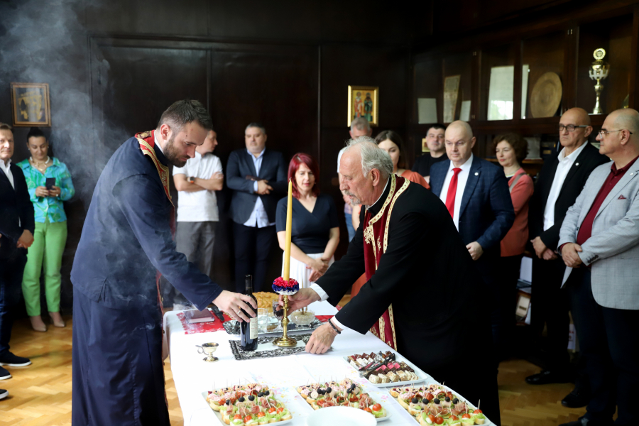 Ove godine obeležili smo svoju slavu u krugu zaposlenih i prijatelja naše kuće, a kolač je osveštao prota Igor iz Crkve Svetog Marka, naveo je domaćin, direktor „Borbe“ Andrija Jorgić.