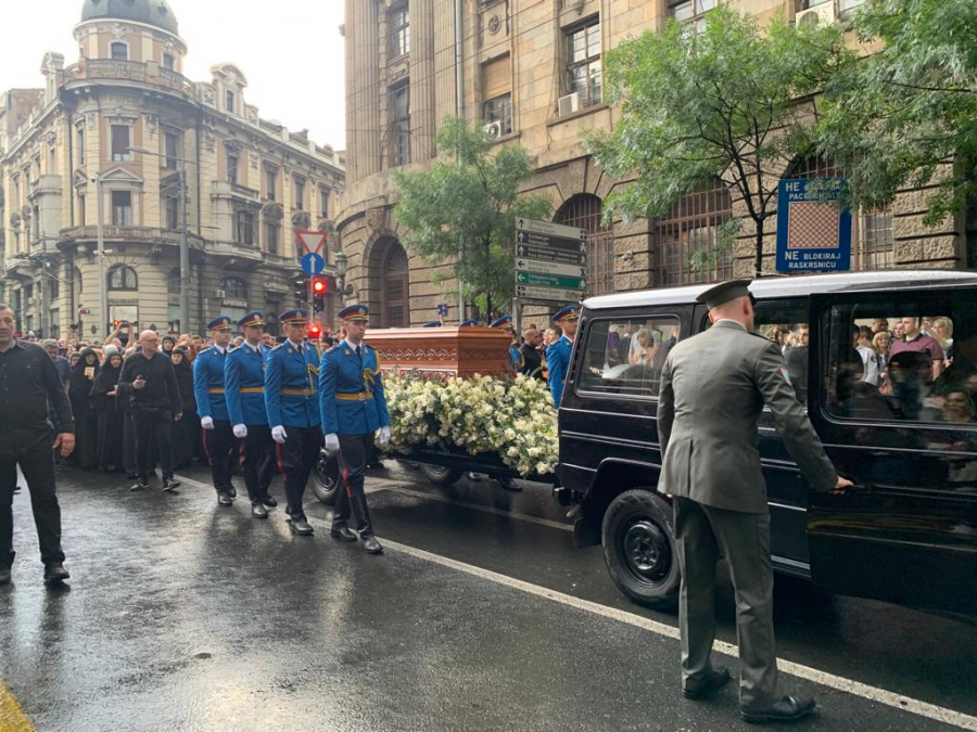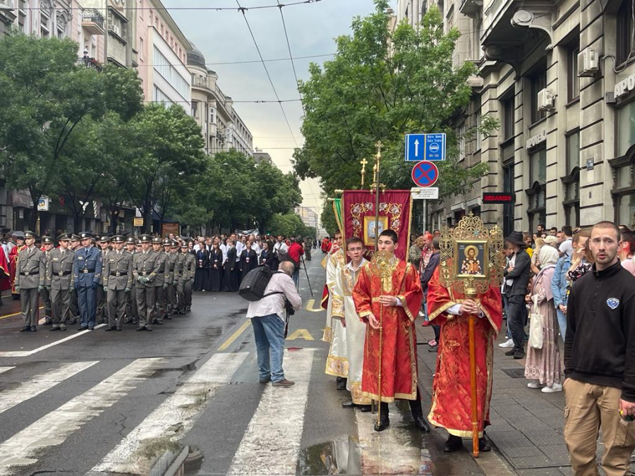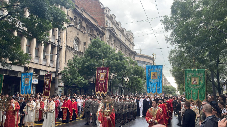 Kivot sa moštima Svetog Nikolaja iznesen je iz Vaznesenjske crkve u Beogradu, a vernici koji su se okupili, krenuli su laganim hodom ka ulici Kneza Miloša.